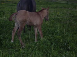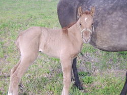 The red dun filly is out of Brogans Peppy Flite and Pines Minnie Mouse. She was born May 1, 2009 with an entire audience there to welcome her in. She was named "Brogans Gracie Gunsmoke" by my sister-in-law who called her "graceful" when she laid down.